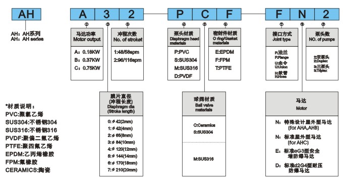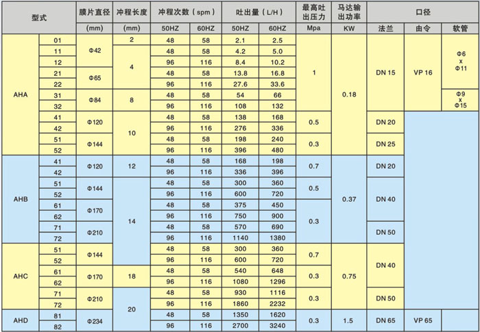 AH系列計(jì)量泵主要型號(hào):AHA、AHB、AHC、AHD